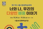 [한국기자연대] 시흥시는 시민이 함께 만들고, 시민이 주인공인 ‘제17회 시흥시평생학습축제’를 오는 10월 24일부터 26일까지 3일간 시흥ABC행복학습타운에서 개최한다. 지난 2006년에 처음 시작된 시흥시평생학습축제는 배움을 통해 성장한 시민들이 학습의 즐거움과 성과를 함께 나누고 축하하는 한마당으로, 올해 17번째를 맞이한다. 이번 축제는 ‘너와 나, 우리의 다양한 배움 이야기’라는 주제로 초청 강연, 체험, 전시, 공연, 포럼 등 시민 누구나 참여할 수 있는 다채로운 프로그램이 마련됐다. 10월 24일 오전 10시에는 TV예능 프로그램인 ‘유 퀴즈 온 더 블럭’에 출연해 학교다운 학교의 새로운 모델을 제시한 이명학 교수(前 중동고 교장)의 초청 강연이 시흥ABC행복학습타운 ABC홀에서 열린다. 이어 오후 2시에는 ‘느린 걸음, 다양한 길’을 주제로 생애 전반의 슬로우 러너를 이해하는 학술포럼이 지혜관 2층에서 진행된다. 10월 25일과 26일에는 28개의 체험 프로그램과 20개 팀의 공연, 전시와 먹거리 부스가 운영되며, 26일 오전 10시 30분에는 의사에서 웹툰 작가, 유튜버로 활동 중인