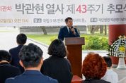 [한국기자연대] 이정선 광주시교육감이 12일 국립5·18민주묘지 ‘역사의 문’ 앞에서 열린 ‘민주화의 새벽기관차 박관현 열사 제43주기 추모식’에 참석했다. 이날 추모식에는 이정선 교육감을 비롯해, 강기정 광주광역시장, 윤목현 5·18기념재단 이사장, 이개호 영광군 국회의원, 유족 및 시민사회단체 관계자 등이 참여해 열사의 숭고한 뜻을 기렸다. 이정선 교육감은 “박관현 열사의 숭고한 정신을 잊지 않고 기억하는 길은 5·18 정신을 미래 세대에 계승하고 발전시키는 교육이다”며, “오월 정신을 전국으로, 세계로 알리고 확산하여 민주주의와 인권, 평화의 가치를 교육 현장에서 실천해 나가겠다”고 밝혔다.