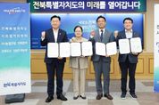 [한국기자연대] 전북특별자치도가 도민이 함께 만든 발전기금을 바탕으로 미래 인재 육성을 위한 장학사업을 추진한다. 도는 2일 도청에서 NH농협은행 전북본부, 초록우산 어린이재단 전북지역본부와 함께 '전북특별자치도 사회협약 제1호'로 ‘미래동행 장학사업’ 협약을 체결했다고 밝혔다. 이번 협약은 전북자치도가 사회협약위원회를 통해 논의한 첫 결실로, 도민 참여로 조성된 기금을 공익 장학사업으로 추진한 사례다. 협약식에는 김관영 전북특별자치도지사, 강태창 사회협약위원회 위원장, 김성훈 NH농협은행 전북본부장, 구미희 초록우산 전북지역본부장이 참석해 의미를 더했다. 발전기금은 전북특별자치도 출범을 기념해 도와 NH농협이 공동으로 출시한 금융상품 ‘NH 함께하는 전북특별자치도 성공예금’을 통해 조성됐다. 2023년 11월부터 2024년 3월까지 한시적으로 판매된 이 상품은 예금의 연평균 잔액 0.1%가 기금으로 적립되고, 여기에 NH농협의 추가 기부가 더해져 총 5천만 원이 마련됐다. 조성된 기금은 초록우산 전북지역본부를 통해 도내 초·중·고교생 가운데 예술, 체육, 수학, 과학, 어학 등 전국대회 입상자 5