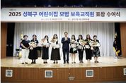 [한국기자연대] 서울 성북구가 지난 26일 관내 어린이집에서 장기간 근무하며 보육서비스 향상과 우수 보육프로그램 개발, 보육환경 개선에 기여한 모범 보육교직원에게 표창을 수여했다. 올해 수상자는 원장, 보육교사, 조리사 등 총 77명으로, 각자의 자리에서 아이들의 안전과 건강, 교육의 질 향상에 힘써온 공로를 인정받았다. 이번 표창은 성북구가 지역 내 보육의 질을 높이고 아이들이 안정적이고 즐거운 환경에서 성장할 수 있도록 기여한 교직원을 격려하기 위해 마련됐다. 수상자들은 오랜 경력 동안 어린이집 운영과 교육, 급식 관리 등 다양한 분야에서 모범적인 활동을 이어온 점이 높게 평가됐다. 이승로 성북구청장은 인사말에서 저출생으로 인해 어려움이 가중된 보육 현장에서 묵묵히 일하는 교직원들의 노고에 존경과 깊은 감사를 표했다. 또한 앞으로도 아이들이 건강하게 성장하고 꿈을 키워 나갈 수 있도록 지속적으로 보육의 질을 높이는 데 힘써 줄 것을 당부했다. 이와 함께 구 차원에서도 교직원의 처우 개선과 보육환경 개선을 위해 다양한 지원 방안을 모색하고 추진하겠다고 밝혔다. 이번 표창 수여식은 교직원들의 사기 진작과 보육