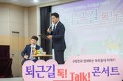 [한국기자연대] 인천 서구는 지난 30일 저녁 서구청 대회의실에서 검암경서동, 연희동 주민 약 160여 명과 함께 ‘퇴근길 톡! Talk! 콘서트’를 열고 서구의 미래 비전을 공유했다. ‘퇴근길 톡! Talk! 콘서트’는 평소 구정 참여가 어려운 직장인들을 위해 야간 시간대에 진행되는 주민 소통 행사로, 강범석 구청장은 2023년 청라 권역, 2024년 검단 권역, 2025년 8월 가정‧신현원창‧석남‧가좌 권역 그리고 9월 검암경서‧연희 권역까지 모든 권역 구민과 직접 만나는 소통의 여정을 완성했다. 이번 검암경서‧연희 권역 행사에서 강범석 구청장은 교통, 경제, 문화 등 구정 전반과 검암역세권 공공주택지구 개발, 공촌동 신개념 실내체육관 건립, 2026년 행정체제개편 계획 등 주요 사업을 쉽게 풀어 설명하며 주민들의 관심을 집중시켰다. 이어진 구민과의 대화 시간에는 “문화활동 지원에도 힘써달라”, “육아에 대한 아낌없는 지원을 바란다” 등 여러 의견이 이어졌다. 구청장은 주민의 목소리에 귀 기울이고 현황을 답변하며 구민들의 궁금증을 해소했다. 한편 이번 행사에는 유관기관인 인천도시공사 관계자가