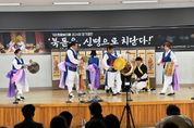[한국기자연대] 거창군은 지난 1일 거창군종합사회복지센터 대회의실에서 거창풍물놀이패의 제24회 정기공연 ‘북돋음, 신명으로 치닫다!’가 구인모 거창군수, 군의원 등 100여 명이 참석한 가운데 성황리에 열렸다고 밝혔다. 이번 정기공연은 거창풍물놀이패와 함께해 온 단원들이 한 해 동안 갈고닦은 기량을 선보이는 자리로, 관객과 출연자가 함께 어우러져 하나 되는 문화소통의 장으로 마련됐다. 공연은 열림굿 창작타악을 시작으로 풍물장단과 소리굿 ‘비나리’, 이매방류 승무와 소고춤, 영남사물, 삼도설장고, 삼도사물 등 전통예술 무대로 꾸며졌으며, 이어 현대적 감각을 더한 타악 퍼포먼스와 무대와 객석이 함께 어우러지는 대동난장이 펼쳐져 관객들의 큰 호응을 얻었다. 이날은 거창풍물놀이패를 비롯해 △너나들이풍물패 △타악그룹 나래울 △전통예술공연단 타혼 △오름무용단 △대파람풍물패(거창대성고 졸업생)가 함께 참여했으며, 전통문화에 익숙하지 않은 군민들도 쉽게 즐길 수 있는 다채로운 볼거리로 가을밤의 흥과 멋이 살아난 신명나는 무대를 선보였다. 하용현 거창풍물놀이패 대표는 “너나없이 어우러지는 푸진 판, 지역에서 활동하