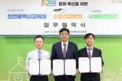 [한국기자연대] 인천광역시교육청은 9월 30일 ㈜월미하이랜드(대표 이덕성) 스토리지인천, 남동희망공간(대표 유병희)과 함께 ‘읽걷쓰’ 문화 확산을 위한 업무협약을 체결했다. 이번 협약으로 참여 기관들은 ▲‘읽걷쓰’ 연계 프로그램 운영 ▲지역사회 공헌 활동 협력으로 ‘읽걷쓰’ 활성화와 시민문화 정착을 위해 함께 나선다. 특히 관련 정보와 자원을 공유해 일상이 배움이 되는 교육환경을 조성하고 지역사회와 함께 성장하는 기반을 마련할 계획이다. 도성훈 교육감은 “인천교육은 ‘읽걷쓰’ 기반의 올바로․결대로․세계로 교육으로 학생성공시대를 활기차게 열어가고 있다”며 “이번 업무협약을 통해 기관 간의 상호 신뢰와 협력을 바탕으로 ‘읽걷쓰’ 실천 문화가 더욱 확산되기를 바란다”고 말했다.