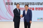 [한국기자연대] 양산시는 지난 21일 유도윤 울산지방검찰청 검사장이 취임을 기념해 양산시청을 방문했다고 밝혔다. 유 검사장은 이날 나동연 양산시장과의 환담에서, 지역사회 범죄예방 및 범죄피해자 보호 지원방안에 대한 의견을 나눴으며, 양산시의 인구 규모와 지리적 특성을 고려해 주민들의 사법 서비스 접근성을 높일 수 있도록 울산지방법원 양산지원과 울산지방검찰청 양산지청 설치의 필요성에 대해서도 논의했다. 나동연 양산시장은 “울산지방검찰청 검사장님께서 직접 양산시를 찾아주셔서 감사하다”며 “앞으로도 검찰과의 긴밀한 협력을 통해 시민들이 안심하고 생활할 수 있는 안전한 양산을 만드는 데 최선을 다하겠다”고 말했다.