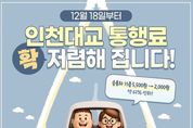 [한국기자연대] 12월 18일부터 인천대교 통행료 확 저렴해 집니다! - 승용차기준 5,500원 → 2,000원(약 63% 인하!) ■ 언제부터, 얼마나 달라지나요? 2025년 12월 18일 00시 부터 시행 인천대교 통행료 평균 인하폭은 63%… ■ 차종별 통행료 한눈에 보기 · 경차: (인하 전) 2,750원 → (인하 후) 1,000원(▼1,750원) · 소형: (인하 전) 5,500원 → (인하 후) 2,000원(▼3,500원) · 중형: (인하 전) 9,400원 → (인하 후) 3,500원(▼5,900원) · 대형: (인하 전) 12,200원 → (인하 후) 4,500원(▼7,700원) ■ 차종 한눈에 구별하기 (경차) · 배기량 1,000cc 미만 · 길이 3.6m·너비 1.6m·높이 2.0m 이하 (소형) · 승용차, 16인승 이하 승합차 · 2.5톤 미만 화물차 · 2축 차량 / 윤폭 279.4mm 이하 (중형) · 17인승 이상 버스 · 2.5톤 이상~10톤 미만 화물차 · 2축 차량 / 윤폭 279.4mm 초과 (대형) · 10톤 이상 대형 트럭 · 3축