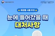 [한국기자연대] ■ 스킨케어&세정 제품도 눈 주의! - 스크럽 세안제 알갱이가 눈에 들어가면 물로 씻고, 이상 시 병원 상담 - 팩 제품 눈 주위는 피해서 사용 - 샴푸/세정제 눈에 들어가면 즉시 물로 충분히 세척 - 손·발 피부연화 제품(*우레아 포함) 눈, 코, 입 등 점막에 닿지 않게 주의 - 제모제(*치오글라이콜릭애씨드 함유) 눈에 들어갔을 경우 미지근한 물 + 붕산수(약 2%)로 헹구기 ■ 머리카락&눈 주변 제품 반드시 주의! - 두발용, 두발염색용, 눈 화장용 제품류 : 눈에 들어가면 즉시 씻기 - 헤어 퍼머넌트 웨이브/스트레이트너 : 눈, 얼굴, 목 등에 약액이 닿지 않게 주의 묻으면 즉시 세척 - 속눈썹 퍼머넌트 웨이브 제품 : 눈과 접속 시 흐르는 물 또는 식염수로 씻기 - 염모제 등 산화제 제품 : 눈에 접촉 시 즉시 물로 세척 ■ 에어로졸·선크림은 분사 방식도 중요해요. - 고압가스를 사용하는 에어로졸 제품 : 눈 주위 및 점막에 직접 분사 금지 - 스프레이형 자외선 차단제 : 손에 덜어 얼굴에 바를 것