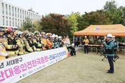 [한국기자연대] 서대문구는 최근 이화여자대학교 산학협력관 일대에서 진행한 ‘2025 재난대응 안전한국훈련’을 성공리에 마무리했다고 3일 밝혔다. 이번 훈련은 ▲지진에 따른 건축물 붕괴와 화재 ▲전기·가스시설 파손 ▲도로 싱크홀 및 인근 산불 확산 등 복합 재난 상황을 가정해 이루어졌다. 단일 재난이 다른 재난으로 연쇄 확산하는 ‘복합 재난’의 특성을 반영해 현장 지휘·통제·복구 기능이 동시에 가동되는 통합형 훈련으로 추진했다. 서대문구청, 서대문소방서, 서대문경찰서, 이화여자대학교 등에서 300여 명이 참여한 가운데 각 기관은 재난 발생 시 상황판단 회의를 통한 신속한 의사결정과 유관기관 협조 체계를 점검했다. 이를 위해 통합지원본부 토론훈련과 실전형 현장훈련을 연계했다. 특히 이번 훈련에서는 소방 헬기와 로봇견(로봇개)을 활용한 입체적 화재 진압과 인명 수색 장면이 시연돼 실전 같은 긴장감을 더했다. 또한 서대문구청 ▲도로과의 ‘GPR(지반탐사 레이더) 차량을 통한 이화여대 일대 지반 공동 탐사’ ▲푸른도시과의 ‘안산(鞍山) 자락 잔불 진화’ ▲재난안전과의 ‘드론을 이용한 현장 실시간