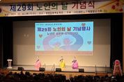 [한국기자연대] 청양군은 30일 청양군 문화예술회관에서 10월 경로의 달을 맞아 대한노인회 청양군지회 주관으로 제29회 노인의 날 기념행사를 성대히 개최했다. 이날 행사에서는 노인복지 발전에 기여한 모범 어르신과 관계자 34명이 수상의 영예를 안았다. ▲국회의원 표창 4명 ▲도지사 표창 2명 ▲군수상 10명 ▲의장상 10명 ▲노인회 중앙회장상 2명 ▲노인회 연합회장상 1명 ▲청양군지회장상 5명 등이 전수됐다. 또한 청양에어로빅 동아리를 비롯한 6개 팀의 다채로운 축하 공연이 이어져 참석한 어르신들과 내빈들에게 즐거움과 감동을 선사했다. 김돈곤 군수는 “경로의 달을 맞아 함께 자리해주신 어르신들께 깊은 존경과 감사를 드린다”며 “앞으로도 어르신들이 행복하고 존경받는 지역사회를 만들기 위해 경로복지 증진에 최선을 다하겠다”고 밝혔다.