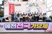 [한국기자연대] 제10회 예천전국가요제가 2일 오후 2시,‘2025 예천활축제&농산물축제’ 특설무대에서 열렸다. (사)한국연예예술인총연합회예천지회(지회장 채희삼)의 주관으로 진행되는 이번 대회에는 전국에서 엄선된 본선 12팀이 출연하여 열띤 경연을 펼쳤다. 예천전국가요제는 지역 문화예술 발전과 대중음악 활성화를 위해 꾸준히 이어져 온 행사로 예천색소폰동호회의 식전공연을 시작으로 본선 진출자 12팀과 강민주, 통일메아리악단, 인댄스 무용단 등의 초청공연이 펼쳐졌다. 시상식에서는 400만 원의 상금이 걸린 대상은 문정옥 씨(대구) 금상은 유소라 씨(충주)가 수상했으며, 은상은 장혜진 씨(문경), 동상은 강나은 씨(서울), 가창상은 김정희 씨(영주), 인기상은 최우혁 씨(대구)에게 각각 수여됐다. 수상자들에게는 수상의 영예와 함께 많은 격려가 전해졌다. 김학동 군수는 “지역문화 활성화와 주민 화합의 장을 마련해 가고 전국가요제가 더욱 발전하여 예천을 대표하는 문화예술축제로 자리매김하기를 바란다”고 전했다.