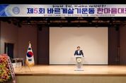 [한국기자연대] 바르게살기운동 진안군협의회(회장 김옥봉) 주관으로 제5회 바르게살기운동 한마음대회가 지난 5일 진안문화의 집에서 개최됐다. 이날 행사에서는 국민의례 및 성과보고 영상 시청, 유공자 포상 등의 본행사와 부대행사로 화합 한마당의 자리가 열렸다. 행사에는 전춘성 진안군수, 동창옥 진안군의회 의장 및 의원, 전북특별자치도 전용태 의원, 바르게살기운동 전북특별자치도협의회 이종서 회장 등 150여 명의 회원이 함께했다. 올해로 제5회를 맞이하는 한마음대회는 정직한 개인, 더불어 사는 사회, 건강한 국가를 만들어 가기 위해 노력한 회원들을 위로하고 격려하는 행사이다. 성과보고 영상에는 바르게살기운동진안군협의회의 중점 사업을 회원들이 각계 각층에서 활동했던 모습이 담겼고, 홍삼축제 홍보를 위해 홍삼티셔츠를 입은 채 제주도 및 전남 영광에서 적극 홍보하는 모습이 인상적이었다. 수여식에서는 협의회 발전에 공을 세운 8명이 수상의 영예를 안았다. 행정안전부 표창은 정재철 산악회장이 수상하고, 진안군수 표창은 박희규 정천면위원회 사무장이 수상했다. 바르게살기운동중앙회장 금장은 전춘성 군수, 허창석 상전면