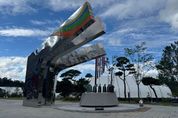 [한국기자연대] 영동세계국악엑스포조직위는 영동세계국악엑스포 개막과 함께 행사장 내에 설치된 상징조형물인 ‘전통의 울림, 미래를 울리다’의 제막식을 26일 개최했다고 밝혔다. 이날 제막식에는 국악엑스포 공동위원장인 정영철 영동군수, 윤영달 크라운해태 회장을 비롯해 민의식 국악 엑스포 집행위원장, 신현광 영동군의회 의장 등 주요 내빈이 참석해 자리를 빛냈다. 국악엑스포 상징조형물은 복합문화예술회관 옆에 높이 6미터, 세로 8.7미터, 가로 6.7미터 규모로, 금속 조각가 심병건 작가가 제작했다. ‘ㄱ’자 기울기에서 가장 맑은 소리를 내는 115도로 깎는 편경을 모티브로 하여 제작된 기하학적 구조의 세 개의 기둥은 국악이 지닌 맑고 청아한 울림을 형상화한다. 또, 음의 파동과 리듬으로 시각화된 율관과 한국 고유의 정체성을 의미하는 오방색 띠로 열린 세계를 향해 뻗어 나가는 에너지를 나타낸다. 세 개의 기둥과 함께, 중앙의 상단에 편종과 편경을 의미하는 파이프를 조형하여 ‘울림과 진동’이 이곳에서 시작돼 세상에 울려 퍼져나감을 표현했다. 16개의 편종은 관람객들이 각각을 두드려 직접 울림과 진동을 느끼며