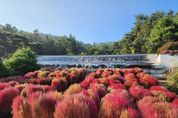 [한국기자연대] 주변 섬들의 이름과 지명을 알 수 있는 전경 안내판이 설치된 전망대에 올라서면 시원한 가을 바닷바람을 맞으며 서해안을 볼 수 있고, 다양한 가을꽃이 만개한 곳! 바로 경기도 안산 대부도 인근에 소재한 바다향기수목원이다. 추석연휴 기간을 맞아 자연의 싱그러운 녹음을 전해주고 있는 바다향기수목원에는 수목원 내 식재된 다양한 가을꽃과 함께 890개 국화 화분이 일제히 개화를 하고, 목화 1,200본과 붉게 단풍이 든 댑싸리 500개, 다양한 색상의 웨이브페츄니아와 로즈마리 1,100본이 가을의 색과 향기를 전하고 있다. 또한 ‘바다향기수목원 사용설명서’, ‘자연 속 숨은 보물찾기’, ‘속속들이 소나무’, ‘흙은 재미있는 우리 친구’ 등 다양한 숲 해설 프로그램이 가을철 수목원을 찾는 가족 단위 방문객들을 맞이하고 있으며, 연중 토요일과 일요일에 신청을 받아 운영되고 있는 ‘향나무 목걸이 만들기’, ‘불어라 피리’ 등의 체험프로그램 또한 관람객을 위해 준비되고 있다. 더욱이 수목원 내 염생식물원에 있는 ‘바다향기전시관’을 지역사회와 예술가를 위한 기획전시실로 개방해 10월 3일부터 12일까지 기획전시