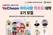 [한국기자연대] 예천군은 지역 학부모들의 자녀 이해와 양육 역량 강화를 위해 운영되는 ‘예천 아이사랑 학부모 대학’ 2기 수강생을 9월 1일부터 10일까지 모집한다. 1기 학부모대학은 다양한 강좌와 수준 높은 강사진으로 큰 호응을 얻으며, 수강생들의 높은 참여율과 만족도로 성공적으로 운영 중이다. 이번에 모집하는 2기 과정은 이러한 성과를 바탕으로 더욱 알찬 프로그램을 준비해 학부모들에게 또 한번 유익한 학습 기회를 제공할 예정이다. 2기 학부모대학은 9월 22일부터 11월 17일까지 6주간 주 1회, 국립경국대학교 예천캠퍼스 청남교육관에서 운영된다. 예천군에 거주하는 미취학 자녀부터 중학생 자녀를 둔 학부모를 대상으로 △첫걸음 과정(미취학자녀 및 예비부모) △배움, 자립 과정(초등학생 학부모) △진로 설계 과정(중학생 학부모) 등 3개 맞춤형 교육과정이 운영된다. 또한 국내외 심리·과학 분야를 대표하는 명사들이 함께해 수준 높은 강연을 선보일 예정이다. 개강식에서는 조벽 고려대 석좌교수가 특별 강연을 진행하며, 본 강연에는 신종호 서울대 교수, 구성애 소장 등의 강연과