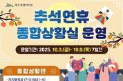 [한국기자연대] 제주특별자치도는 2일 오영훈 지사 주재로 ‘2025년 추석 연휴 종합대책 보고회’를 열고 ‘모두에게 닿는 민생회복, 모두가 행복한 추석명절’을 슬로건으로 분야별 세부 추진계획을 점검했다. 이날 보고회에는 행정부지사, 정무부지사를 비롯해 안전건강실장, 특별자치행정국장, 행정시 부시장 등 30여 명이 참석했다. 제주도는 3일부터 9일까지 특별자치행정국장을 총괄로, 총 7개반 2,157명을 투입해 종합상황실을 운영한다. 도 7개반 555명, 제주시 7개반 875명, 서귀포시 9개반 727명이 참여하며, 하루 평균 308명이 현장에서 비상근무를 선다. 제주 120 만덕콜센터와 당직 근무자가 도민과 관광객 불편신고를 접수한다. 9월 23일 수립해 추진 중인 추석연휴 종합대책은 ▲민생경제 안정 ▲도민안전 확보 ▲교통·관광 편의 ▲도민불편 해소 ▲나눔실천 및 도민화합 등 5개 분야로 구성됐다. 물가안정 및 소비촉진을 위해 물가대책 종합상황실을 꾸려 추석 성수품 가격을 특별 관리하고 있다. 장바구니 물가조사를 주 1회에서 주 2회로 늘리고, ‘탐나는전’ 인센티브 13% 적립, 민생회복