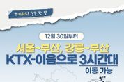 [한국기자연대] 12월 30일부터 서울~부산, 강릉~부산 KTX-이음으로 3시간대 이동 가능 ■ 중앙선 운행 횟수 대폭 확대 청량리~부전 구간: 하루 총 6회→18회, 3배 증편 ■ 동해선 부전(부산)~강릉 운행 소요시간 3시간 54분으로, 기존 ITX-마음 운행(5시간 4분)대비 약 1시간 10분 단축