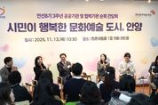 [한국기자연대] 안양시는 13일 오전 10시 30분 평촌아트홀 1층 카페 아트림에서 ‘시민이 행복한 문화예술 도시, 안양’을 주제로 (재)안양문화예술재단과 민선 8기 3주년 공공·협력기관 순회 간담회를 개최했다. 이번 간담회는 민선8기 3주년을 맞아 안양시 문화예술 정책의 주요 성과를 공유하고, 현장 예술인과 시민의 의견을 직접 청취하기 위해 마련됐다. 행사에는 안양 지역 예술인과 문화단체 관계자, 시민 등 120여 명이 참석해 안양의 문화예술 비전과 발전 방향에 대해 활발한 소통의 시간을 가졌다. 간담회에서는 ▲시민이 주인공이 되는 ‘안양춤축제’ ▲생활문화로 피어나는 ‘마을축제 지원사업’ ▲지역·청년예술인 창작활동 지원 ▲안양박물관과 공공예술프로젝트(APAP) 등 시민이 함께 만들어가는 다양한 문화예술 사례가 소개됐다. 안양춤축제는 안양만의 축제가 아니라 관광형 축제로 거듭나고 있다. 지난 9월 3일간 열린 축제에는 총 14만2,000여명이 참여했는데, 이 중 40%가 타 시도민으로 추산된다. 춤축제 기간 열린 유스클럽챔피언십의 한 고등학생 참가자는 “대회 분위기가 생각보다 훨씬 뜨거웠고 행복했다”며 “앞으로