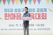 [한국기자연대] 서울 성동구는 지난 11월 1일 살곶이체육공원에서 성동구 아파트 단지들이 한자리에 모여 ‘제5회 아파트공동체 한마음 체육대회’를 성황리에 개최했다. 올해로 5회째를 맞는 이번 체육대회는 성동구 아파트공동체 활성화단체 연합회(성아공 연합회)가 중심이 된 아파트공동체 한마음 체육대회 추진위원회 주관으로 진행됐으며, 성동구청과 각 아파트 공동체 활성화단체가 협력하여 원활한 행사 진행을 지원했다. 성동구가족센터, 옥수종합사회복지관 등 관내 복지시설에서는 다양한 체험부스 등을 운영했다. 체육대회는 관내 32개 아파트에서 약 650명의 입주민이 참여하여, 각기 다른 아파트 단지 주민들이 4개의 팀을 이뤄 협력과 경쟁을 즐기는 방식으로 진행됐다. 참가자들은 풍선 기둥 만들기, 한마음 공굴리기 등 가족과 이웃들이 함께 즐길 수 있는 스포츠 종목에 참여도 하고, 입주민 장기 자랑, 아이들을 위한 키즈존, 푸드트럭 등 다양한 볼거리, 먹을거리 등으로 즐거운 시간을 보냈다. 특히, 이번 체육대회는 단순히 스포츠를 즐기는 것을 넘어, 아파트 단지 내 주민들 간의 유대감을 깊게 만드는 기회가 됐다. 경기가 진행되는 동