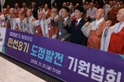 [한국기자연대] 충청북도와 충북불교총연합회는 11월 21일 김영환 도지사를 비롯한 시·군 부단체장과 충북불교총연합회(회장 정덕 스님), 불교계 인사 등 160여 명이 참석한 가운데 도민의 안녕과 도정 발전을 기원하는‘2025년 민선8기 도정발전 기원법회’를 성대히 개최했다. 이날 행사는 ▲도정발전 기원법회 ▲민선 8기 충북의 일곱 개의 별을 중심으로 한 도정현안 특강 ▲오찬 간담회 순으로 진행됐으며, 참석자들은 화합과 소통 속에서 도민 삶의 행복과 지역 발전을 위해 하나 된 마음으로 기도했다. 도·불협의회는 도내 스님들과 불자들에게 도정 주요 현안에 대한 이해를 높이고, 종교계와 도정 간 소통과 협력을 강화하기 위해 1999년부터 매년 개최해 왔다. 김영환 도지사는 “충북의 발전을 위해 함께 기도해 주시고 변함없는 성원을 보내주시는 모든 분들게 깊이 감사드린다”며 “적극행정을 통한 충북의 과감한 변화와 혁신이 대한민국 전역에 개혁의 훈풍을 일으켜 충북이 전 분야에서 대한민국의 중심에 설 수 있도록 여러 대덕스님들과 불자 여러분의 지속적인 관심과 응원을 부탁드린다”고 말했다.