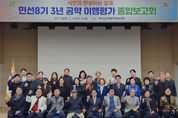 [한국기자연대] 청주시는 19일 유네스코 국제기록유산센터에서 공약이행시민평가위원들과 관계 공무원 등 80여 명이 참석한 가운데 ‘민선8기 3년 공약 이행평가 종합보고회’를 개최했다. 이번 보고회에서는 지난 10월 개최된 각 분과회의를 통해 도출된 공약 과제의 이행평가 결과를 공유하고 남은 기간의 완성 방향과 향후 미래 과제에 대해 논의했다. 평가위원들은 민선8기 4년차에 대부분의 공약이 결실을 맺고 있고, 청주시의 공약이행이 시민이 체감하는 성과로 안정적으로 추진되고 있다고 평가했다. 88개의 공약과제는 △완료 12건 △이행 후 계속 추진 43건 △정상추진 32건 등 이행률 83.6%로 대부분이 가시적인 성과로 이어지고 있는 것으로 나타났다. 추진현황을 살펴보면, 민선8기 3년차에서는 도시기반 정비, 생활 인프라 확충, 투자활성화 등 다양한 분야에서 구체적인 성과를 거뒀다. 우선 시민참여와 사회공헌 활동의 중심 거점이 될 청주시 자원봉사센터 이전 확충사업이 지난 10월 완료됐으며, 무심천·미호강 친수공간 조성사업을 통해 모충교 일대 환경정비(4월)와 미호강 생태공원 편의시설(6월,) 방