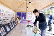 [한국기자연대] 김관영 전북특별자치도지사가 29일 이태원 참사 발생 3주기를 맞아 전주 풍남문광장에 마련된 ‘이태원 참사 희생자 추모 분향소’를 찾아 헌화와 묵념을 올리며 희생자들을 추모했다. 분향소는 지난 2022년 10월 29일 발생한 이태원 참사를 기억하고, 다시는 같은 비극이 되풀이되지 않기를 바라는 뜻에서 전북시민대책위원회와 유가족협의회 전북지부가 공동으로 운영하고 있다. 앞서 지난 18일에는 ‘이태원 참사 3주기 전북 추모대회’가 개최돼 도민들이 함께 희생자를 기리고 안전한 사회를 향한 다짐을 나누는 자리가 마련된 바 있다. 김관영 전북자치도지사는 “이태원참사는 사회 전반의 안전의식을 일깨운 사건”이라며 “참사의 아픔을 가슴에 새기며 더욱 안전한 전북을 만드는 데 혼신의 노력을 기울이겠다”고 강조했다.
