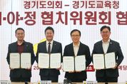[한국기자연대] 경기도교육청과 경기도의회가 변화하는 교육환경 속에서 긴밀한 소통과 협력 강화를 위해 손을 맞잡았다. 경기도교육청은 9일 도의회 예담채에서 ‘경기도의회-경기도교육청 여야정 협치위원회’ 협약식을 열고 본격적인 협치 행보에 나선다. 협약식에는 임태희 경기도교육감을 비롯한 김진경 의장, 백현종 국민의힘 대표의원, 이용욱 더불어민주당 총괄수석부대표의원 등이 참석해 협약서에 서명하며 위원회의 출범을 공식화했다. 이날 임태희 교육감은 자리에서 “일의 대부분은 긴밀한 소통과 공동의 목표를 확인하는 것으로 해결할 수 있다고 생각한다”며“주요 정책 사항, 예산안, 교육 현안 등에 대해 긴밀히 협력하겠다”고 말했다. 이어 “쟁점 사안과 애로사항 등이 있을 때 의원님들의 지혜를 구하고 챙기도록 하겠다”며 따뜻한 마음으로 도교육청을 바라봐 줄 것을 요청했다. 이번 협치위원회는 지난 2022년 12월 구성된 ‘여야정 협의회’가 확대, 발전된 형태로 양 기관 간 정책 논의 구조를 한층 강화한 것이 특징이다. 향후 협치위원회는 ▲주요 교육정책과 조례안 ▲예산안 ▲사회적 현안 등을 사전에