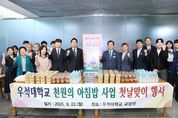 [한국기자연대] 완주군이 우석대학교 교양관에서 ‘천 원의 아침밥’ 사업 하반기 첫날 맞이 행사를 개최하고 본격적인 사업 추진에 나섰다. 22일 완주군은 우석대학교 교양관에서 천 원의 아침밥 사업 하반기 첫날 맞이 행사를 가졌다. 이날 행사에는 유희태 완주군수와 박노준 우석대 총장, 김정은 사회적협동조합 양지뜰 대표 등이 참여해 바쁜 학업과 생활로 아침식사를 거르는 대학생들에게 로컬푸드 식재료를 활용한 아침식사를 직접 전달하고, 격려의 메시지를 전달했다. 이번 행사는 하반기 사업의 성공적인 추진을 다짐하고, 학생들의 다양한 의견 청취와 함께 사업의 내실화를 기하기 위해 마련됐다. 학생들에게 제공될 메뉴는 상반기 추진된 만족도 조사를 반영해 지역산 쌀을 활용한 덮밥을 다양화하고, 과일 등 영양가가 높고 건강한 간편식 식단으로 구성한다. 특히, 직매장을 운영 중인 완주로컬푸드 협동조합에서는 판매되지 않은 신선한 농산물을 기부하고자 하는 농가를 적극 발굴 연계해, 사업에 힘을 보탤 계획이다. 완주군은 상반기 동안 진행된 사업을 도 먹거리통합지원센터와 함께 지속적으로 모니터링해 하반
