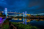 [한국기자연대] 인천광역시 계양구는 19일 저녁 계양대교 일원에서 ‘계양아라온 아트웨이(빛의 거리 3단계)’ 점등식을 성황리에 개최했다고 밝혔다. ‘계양아라온 아트웨이’는 2023년과 2024년에 조성된 1·2단계 빛의 거리를 계양대교를 중심으로 연결하는 최종 사업이다. 이번 3단계 조성을 통해 단절돼 있던 수변 공간이 경관조명, 미디어 영상 패널, 트릭아트존 등이 어우러진 통합 문화관광 코스로 거듭났다. 이날 점등식은 구립교향악단의 웅장한 연주와 인기 가수의 축하 공연 등 다채로운 무대로 꾸며졌다. 하이라이트인 점등 퍼포먼스에서는 계양대교 타워 전면을 활용한 초대형 미디어파사드가 장관을 이루며 시민들의 탄성을 자아냈다. 시민들은 휴대폰 불빛으로 화답하며 새로운 야간 명소의 탄생을 함께 축하했다. 윤환 계양구청장은 “이번 아트웨이 조성으로 그동안 단절됐던 계양아라온의 남단과 북단을 잇는 빛의 거리가 완성됐다.”라며, “과거 아무도 찾지 않던 이곳을 수도권 대표 관광명소로 만든 이 빛이, 계양을 대한민국 국제관광의 관문으로 성장시키는 시작이 될 것”이라고 말했다. ‘계양아라온 아트웨이’는 매일 저녁