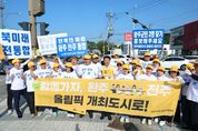 [한국기자연대] 우범기 전주시장이 시민들과 함께 완주·전주 통합을 염원하는 출근길 통합 캠페인에 나섰다. 완주·전주 통합운동을 펼치고 있는 완주·전주 상생발전네트워크(회장 박진상, 이하 상생발전네트워크)는 22일 서전주아울렛 삼거리 일대에서 우범기 전주시장과 50여 명의 회원들이 참석한 가운데 완주·전주 통합의 필요성과 당위성에 대한 시민 공감대를 높이기 위한 ‘완주전주 통합 염원을 담은 범시민 출근길 통합 캠페인’을 전개했다. 특히 이날 캠페인에는 완주·전주 통합활동을 적극 지원하고 추진해 온 우범기 전주시장이 동참해 출근을 위해 완주군 이서면과 김제시 방면을 오가는 시민들에게 통합의 필요성과 기대효과를 설명했다. 또한 우 시장은 캠페인에 참여한 시민들과 민간단체와 소통하며 응원을 전하는 한편, 참가자들과 함께 피켓을 흔들며 아침 출근길 시민들에게 완주-전주 통합을 염원하는 마음을 전했다. 캠페인에 참여한 완주·전주 상생발전네트워크의 한 회원은 “우리 지역의 미래를 위해 꼭 필요한 일이며, 완주군민들에게 완주·전주 통합을 향한 전주시민들의 염원을 전달하기 위해 지난 7월부터 캠페인 활동을 지속하
