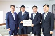 [한국기자연대] 남관우 전주시의회 의장이 24일 전주를 방문한 윤호중 행정안전부 장관에게 완주·전주 통합 주민투표 추진 촉구 결의안을 전달했다. 전주시의회는 앞서 22일 열린 제424회 임시회 1차 본회의에서 해당 결의안을 만장일치로 채택하고, 행정안전부장관 등에게 전달키로 한 바 있다. 남 의장은 대한민국사회적경제박람회 참석을 위해 이날 전주를 방문한 윤 장관에게 결의안을 전달하며 “완주‧전주 통합은 행정 효율성 제고를 넘어, 전북의 성장 거점을 완성하기 위한 시대적 과제”라며 “정부가 양 지역의 통합을 위해 주민투표를 할 수 있도록 적극적 지원과 협력에 나서달라”고 요청했다. 남 의장은 특히 “완주와 전주는 생활권, 경제권, 문화권을 이미 공유하고 있는 하나의 공동체”라며 “지속가능한 지역발전과 국가균형발전의 실현을 위해 통합 논의가 더 이상 늦춰져서는 안 된다”고 강조했다. 이날 전달한 결의안은 남 의장이 지난 임시회에서 직접 발의한 것으로 ▲행정안전부의 즉각적인 주민투표 권고 ▲정부의 갈등 해소를 위한 실질적‧구체적 방안 마련 ▲지방시대위원회와 중앙정부의 적극적인 지원책 수립 등의 내용을 포함하고 있