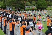 [한국기자연대] 서울시 소방재난본부는 8월 26일 국립대전현충원(소방공무원 묘역)에서 순직 소방공무원 6位(위)에 대한 합동 안장식을 거행했다고 밝혔다. 이번 안장식은 지난 2023년과 2024년, 사망 시기와 관계없이 국립묘지 안장이 가능하게 되고 안장 자격도 ‘위험직무순직자’에서 ‘일반순직자’까지 확대되게끔 '국립묘지법 시행령'이 개정됨에 따라 이뤄지게 됐다. 이에 서울소방재난본부에서는 올해 국립묘지 안장 예정인 순직 소방공무원 총 23명 중 유가족과 협의된 6명을 먼저 국립대전현충원에 안장했으며, 나머지 17명에 대해서도 연말까지 국립서울현충원에 안장될 수 있도록 차질 없이 준비를 이어갈 방침이다. 이날 행사에는 유가족을 비롯해 소방청, 의용소방대, 재향소방동우회, 순직소방공무원추모기념회 등 200여 명이 참석한 가운데 ▲헌화 및 분향 ▲추모사 ▲합동 안장 순으로 엄숙하게 진행됐다. 서울소방재난본부 권혁민 본부장은 추모사에서 “국민 안전을 위해 사명을 다하다 순직하신 선배님들께 깊은 경의를 표하며, 유가족분께도 진심 어린 위로의 말씀을 드린다”며 “순직 소방공무원의 헌신이 사회 전반에서 존중받