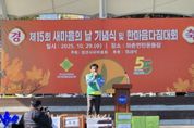 [한국기자연대] 경산시새마을회는 29일 와촌면민 운동장에서 새마을 가족들과 초청 내빈 등 500여 명이 참석한 가운데 '제15회 새마을의 날 기념식 및 한마음 다짐 대회'를 개최했다. 이번 행사는 새마을운동 55주년으로 기념식 및 한마음 다짐 대회를 통해 그간의 공익 활동과 사회봉사 등을 위해 노력해 온 새마을 회원들을 격려하고 새마을운동을 널리 홍보하여 그 가치를 되새기는 의미 있는 시간을 가지기 위해 마련됐다. 이날 행사는 1부 기념식을 시작으로 2부 한마음 다짐 대회로 이어져 장 윷놀이, 협동 배구 등 체육대회를 통하여 참여자 간의 화합과 친목을 도모했다. 이말식 경산시새마을회장은 “이번 ‘제15회 새마을의 날’기념식과 ‘한마음 다짐대회’는 새마을운동의 가치를 재조명하고, 시민들의 새마을운동에 대한 이해를 높이는 계기가 됐다”며 “ 앞으로도 경산시새마을회는 새마을운동의 정신을 바탕으로 지역 사회 발전에 기여하고, 시민들에게 새로운 활력을 불어넣는 데 최선을 다하겠다”고 밝혔다. 조현일 경산시장은 “새마을운동은 우리나라의 눈부신 경제 성장에 앞장서 잘 살아보겠다는 국민의 의지와 신념을 만들어 낸