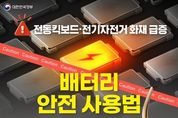 [한국기자연대] ■ 배터리 안전 사용법 (구매 시) 국가통합인증(KC 마크) 확인. (사용 시) 부풀음, 과열 시 사용 중단하고 점검 의뢰. (충전 시) 충전 완료 후 코드 뽑아 전원 차단. 외출하거나 취침 시 충전 금지. (보관 시) 직사광선과 습기를 피하고 서늘한 곳. (폐기 시) 절연테이프로 단자 감싼 후 안전 폐기. ※ 충전 중 연기나 타는 냄새가 나면 즉시 전원 차단·119 신고.