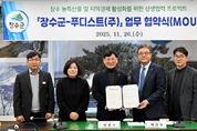 [한국기자연대] 장수군은 26일 군청 회의실에서 B2B 식자재 전문 기업인 푸디스트 주식회사(사조그룹 계열)와 지역 경제 활성화와 농가 상생 발전을 위한 전략적 업무협약을 체결했다고 밝혔다. 이날 협약식에는 최훈식 장수군수를 비롯해 푸디스트 주요 실무·책임자가 참석해 군 농특산물·레드푸드 판로 확대와 지역 일자리, 축제 홍보, 사회공헌으로 이어지는 다양한 협력 의지를 공유했다. 장수군 대표 축제인 ‘장수한우랑사과랑축제’로 전국적으로 유명해진 장수 농특산물과 레드푸드에 대한 소비자들에 관심이 매우 높아졌다. 이에 푸디스트는 장수 농가와의 직거래를 확대해 농특산물 수급 불안정을 완화하고 합리적인 가격체계를 마련함으로써 지역 농업의 지속 가능성을 높이고자 협약을 추진하게 됐다. 이번 협약으로 장수군과 푸디스트는 한우, 사과, 토마토, 오미자 등 군의 대표 농특산물과 레드푸드에 대해 제품 기획, 상품 개발, 유통 등 전반에 걸친 전략적 협력 체계를 구축해 안정적인 판로를 개척한다. 더불어 장수 지역 농가와 직접 계약을 체결해 선제적으로 물량을 확보하고 기업과 농민이 함께 성장할 수 있는 상생