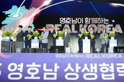 [한국기자연대] 전라남도와 경상북도는 10일 목포 문화예술회관 일원에서 ‘영호남이 함께하는 Real Korea!’라는 슬로건 아래 2025 영호남 상생협력 화합대축전을 개최했다. 영호남 상생협력 화합대축전은 국민 대통합이라는 기치 아래 전남도와 경북도가 의기투합해 문화예술을 매개로 서로 소통하고 화합하며 상생과 협력의 새로운 지방시대를 열어가고자 2022년부터 매년 순차 개최하고 있다. 이번 영호남 상생협력 화합대축전은 12일까지 개최된다. 행사 기간 영호남 청년 버스킹 등 다채로운 문화예술 공연이 펼쳐지며, 영호남 상생관 등도 운영된다. 특히 올해 처음으로 전남·경북 청년 기업인 교류의 장을 마련해 영호남 동반 성장의 새로운 계기를 열었다. 청년들이 지역 미래를 직접 체험하고 함께 설계하며 협력 기반을 확대한다. 10일 행사에는 김영록 전남도지사, 김학홍 경북도 행정부지사, 김대중 전남도교육감, 조강훈 한국예총회장 등이 참석했다. 특히 김영록 지사와 김학홍 행정부지사는 웹툰 공모 전시, 청년작가 교류전, AI-아트 앤 테크 전시관 등 영호남 교류 현장을 직접 살피며 소통과 화합 의지를