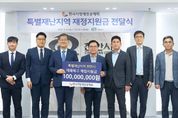 [한국기자연대] 천안시는 한국지방재정공제회로부터 특별재난지역 재해복구 재정 지원금 1억 원을 전달받았다고 4일 밝혔다. 이날 시청 제1소회의실에서 열린 전달식에는 김석필 천안시장 권한대행 부시장과 정선용 한국지방재정공제회 이사장, 관계 공무원 등이 참석했다. 한국지방재정공제회는 전국 지방자치단체를 회원으로 두고 있으며, 회원 지원사업의 일환으로 특별재난지역으로 선포된 지역에 재해복구 재정 지원금을 지원하고 있다. 김석필 권한대행은 “지방재정 발전을 위해 항상 힘써주시는 한국지방재정공제회 관계자분께 감사드린다”며 “전달받은 지원금은 수해복구 재원으로 활용하겠다”고 말했다. 한편, 천안시는 지난 7월 16일부터 20일까지 닷새간 내린 집중호우로 하천시설 78개소, 도로 14개소, 주택 118동, 농작물 35ha 등의 피해를 보았으며, 지난달 6일 정부의 특별재난지역으로 지정됐다.