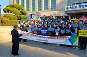 [한국기자연대] 민족통일 옥천군협의회(회장 이규억)가 4일 옥천읍 행정복지센터에서 회원 45여 명이 참석한 가운데 ‘농어촌 기본소득 시범사업지 옥천군 추가 지정 촉구 결의대회’를 개최했다. ‘농어촌 기본소득 시범사업’은 농촌 지역의 생활 안정과 지역경제 활성화를 목표로 한 정부 핵심 사업으로, 선정된 마을 주민들에게 2026년부터 2027년까지 2년간 매월 15만 원의 기본소득을 지급하는 제도다. 정부는 지난 10월 20일 경기 연천, 강원 정선, 충남 청양, 전북 순창, 전남 신안, 경북 영양, 경남 남해까지 총 7개 군을 최종 사업 대상지로 선정했다. 이날 결의는 최근 정부의 농어촌 기본소득 시범지역 선정 과정에서 옥천군이 제외된 데 따른 것으로, 참석자들은 “지역 형평성 및 지역균형발전을 고려하여 옥천군을 추가 지정해야 한다”는 데 뜻을 모았다. 이규억 회장은 “옥천과 같은 농촌 지역이 활력을 되찾고 세대 간 균형을 이루기 위해서는 충북을 배제해서는 안된다”며 “군민의 기대와 희망이 담긴 농어촌 기본소득 시범사업에서 옥천군이 제외된 것은 큰 아쉬움이다. 지금이라도 옥천군을 추가 지