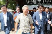 [한국기자연대] 광주를 방문한 우원식 국회의장이 강기정 광주광역시장과 함께 5일 광주비엔날레전시관에서 전시 중인 ‘2025 광주디자인비엔날레’를 관람했다. 이날 광주디자인비엔날레 관람에는 우원식 의장, 강기정 시장, 안도걸 국회의원, 조오섭 국회의장 비서실장, 윤범모 광주비엔날레재단 대표, 최수신 2025 광주디자인비엔날레 총감독 등이 함께 했다. 이들은 전시 작품인 ▲포용디자인 35년의 여정-옥소와 스마트디자인 ▲모두의 일상에 따뜻함을 더하는 LG전자 ▲광주디자인진흥원의 광주도시철도 포용디자인 프로젝트 ▲공간경험 확장을 위한 이(e)-모빌리티 모듈형 가전 ▲로봇 보조 엄지손가락 ‘세 번째 엄지(Third Thumb)’ ▲고령자 돌봄 로봇 ‘래미(Rami)’ 등을 살펴봤다. 우원식 의장은 관람에 앞서 방명록에 ‘민주주의와 광주정신, 광주디자인비엔날레와 함께 세계로!’라는 글귀를 남겼다. 우원식 국회의장은 “광주디자인비엔날레 주제는 포용디자인으로, 차별과 배제가 아닌 모두가 존중받는 민주주의 사회를 열망한 광주정신과 직접 맞닿아 있다”며 “광주디자인비엔날레가 광주를 넘어 대한민국 위상을 높이고, 세계