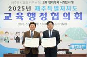 [한국기자연대] 제주특별자치도와 제주특별자치도교육청이 청소년 대중교통 무료 이용 협력체계 구축, 제주형 협약고등학교 추진 등 9개 협력안건에 합의했다. 학생 교통비 부담 제로화부터 신재생에너지 분야 맞춤형 인재 육성까지, 교육과 지역발전을 아우르는 포괄적 협력체계를 구축한다. 제주도와 제주도교육청은 30일 오전 10시 제주도청 탐라홀에서 ‘2025년 제주특별자치도 교육행정협의회’를 개최하고 이같이 밝혔다. 2007년 '제주특별자치도 교육행정협의회 구성·운영에 관한 조례' 제정 이후 17번째로 열린 이날 협의회에는 공동의장인 오영훈 지사와 김광수 교육감을 비롯해 양 기관 관계자, 도의회 강동우 의원(교육위원회)이 참석해 심도 있는 논의를 진행했다. 양 기관은 올해 3월부터 2차례의 실무협의회를 통해 안건을 논의한 후 이날 교육행정협의회에 9개 안건을 상정, 최종 합의안을 도출했다. 주요 안건은 △청소년 대중교통 무료이용 협력체계 구축 △제주 농어촌유학 공동 추진 △제주형 협약고등학교 운영 협력체계 구축 △제주어 보전 및 활용 확산 협업 추진 △전국(장애인) 체전 학생서포터즈 운영 △학교안