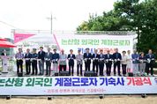 [한국기자연대] 논산시가 농촌의 고질적인 인력난 해소를 위해 ‘논산형 외국인 계절근로자 기숙사’ 건립을 본격 추진한다. 시는 25일 양촌면 인천리 일원에서 백성현 논산시장을 비롯해 도·시의원, 농협 관계자, 지역 주민 등 200여 명이 참석한 가운데 기숙사 건립 기공식을 개최했다. 이번에 건립될 기숙사는 연면적 1,648㎡, 36실 규모로 72명의 계절근로자가 생활할 수 있도록 설계됐다. 2026년 12월 준공 후 2027년 1월 개관을 목표로 하고 있다. 외국인 계절근로자 제도는 파종기, 수확기 등 단기간 발생하는 농촌 인력 부족 문제를 해결하기 위해 최대 8개월 이내로 외국인 인력을 유치하는 제도이다. 신원이 보장된 외국인 인력을 구할 수 있다는 장점이 있지만, 일부 농가에서는 계절근로자 고용 시 의무적으로 갖춰야 하는 숙소 마련에 어려움을 겪어 제도 활용에 걸림돌이 되어왔다. 이에 논산시는 이번 기숙사 건립을 통해 농가의 숙소 부담을 덜어주고, 근로자에게는 쾌적한 주거환경을 제공함으로써 제도 활용도를 높인다는 계획이다. 이는 안정적인 인력 확보로 이어져