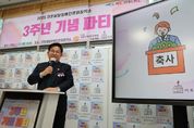 [한국기자연대] 박강수 마포구청장은 11월 27일 오후 4시, ‘마포 발달장애인 문화창작소(양화로 178-5)’ 개관 3주년 기념 파티에 참석해 이용인·가족·운영 관계자들과 따뜻한 축하의 시간을 가졌다. 이번 행사는 서울장애인부모연대 마포지회가 주최·주관한 것으로, 그동안 문화창작소를 이용해 온 발달장애인들의 활동 성과를 함께 나누기 위해 마련됐다. 마포 발달장애인 문화창작소는 훌라, 클라이밍, 요리 교실 등 다양한 프로그램을 운영하며 발달장애인의 생활 능력 향상과 문화 활동 참여 확대를 위해 꾸준히 노력해오고 있다. 행사는 개회 선언을 시작으로, 문화창작소가 지난 3년 동안 만들어 온 성장의 발자취를 담은 성과 영상 상영과 박강수 마포구청장의 축사, 그리고 듀엣 바이올린 축하 공연이 이어지며 잔잔한 감동과 따뜻한 응원이 흐르는 시간으로 채워졌다. 이어진 족자 및 감사장 전달식에서는 문화창작소의 운영을 위해 보이지 않는 곳에서 힘써온 지도자에게 감사의 마음을 전하며 서로를 격려하는 뜻깊은 순간이 마련됐다. 마지막으로 3주년을 기념하는 떡케이크 커팅이 진행되자 현장에는 축하의 박수와 환한